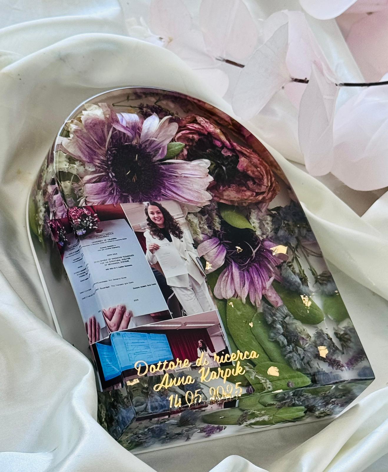 MISURA 24X18CM. Acquistando questo articolo avrai la possibilità di preservare per sempre i fiori del tuo giorno più bello. Ci tengo a precisare che utilizzo una resina di alta qualità CICLOALIFATICA per evitare ingiallimento negli anni. Il prezzo è compreso di RITIRO dei fiori e della foto da inserire più SPEDIZIONE finale .E’ importante in caso di fiori freschi ricevere il bouquet il prima possibile dopo il matrimonio per un lavoro ottimale. Ti spiegherò io come imballare bene il pacco. Prenoterò poi il ritiro tramite il mio corriere che passerà direttamente a casa tua. Ricevuto il bouquet, avvio un processo di disidratazione, questa fase richiede due settimane, dopo di che passo all’inglobazione dei fiori, un lavoro lungo e delicato.