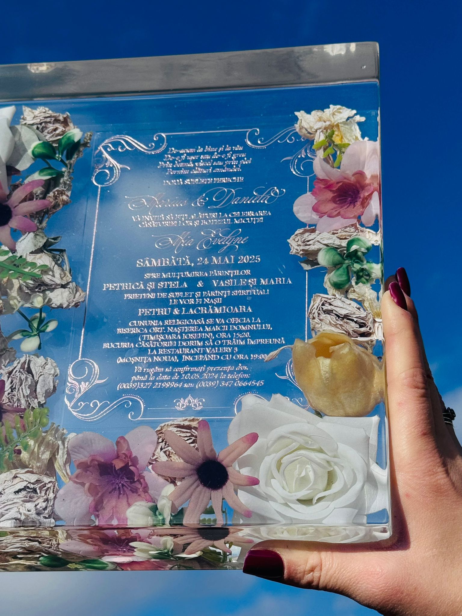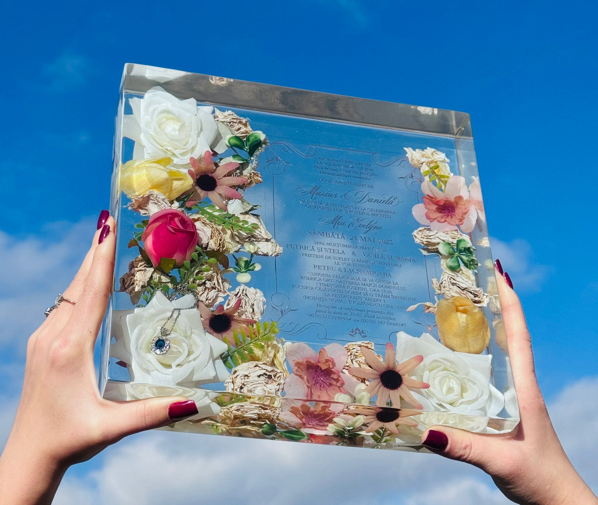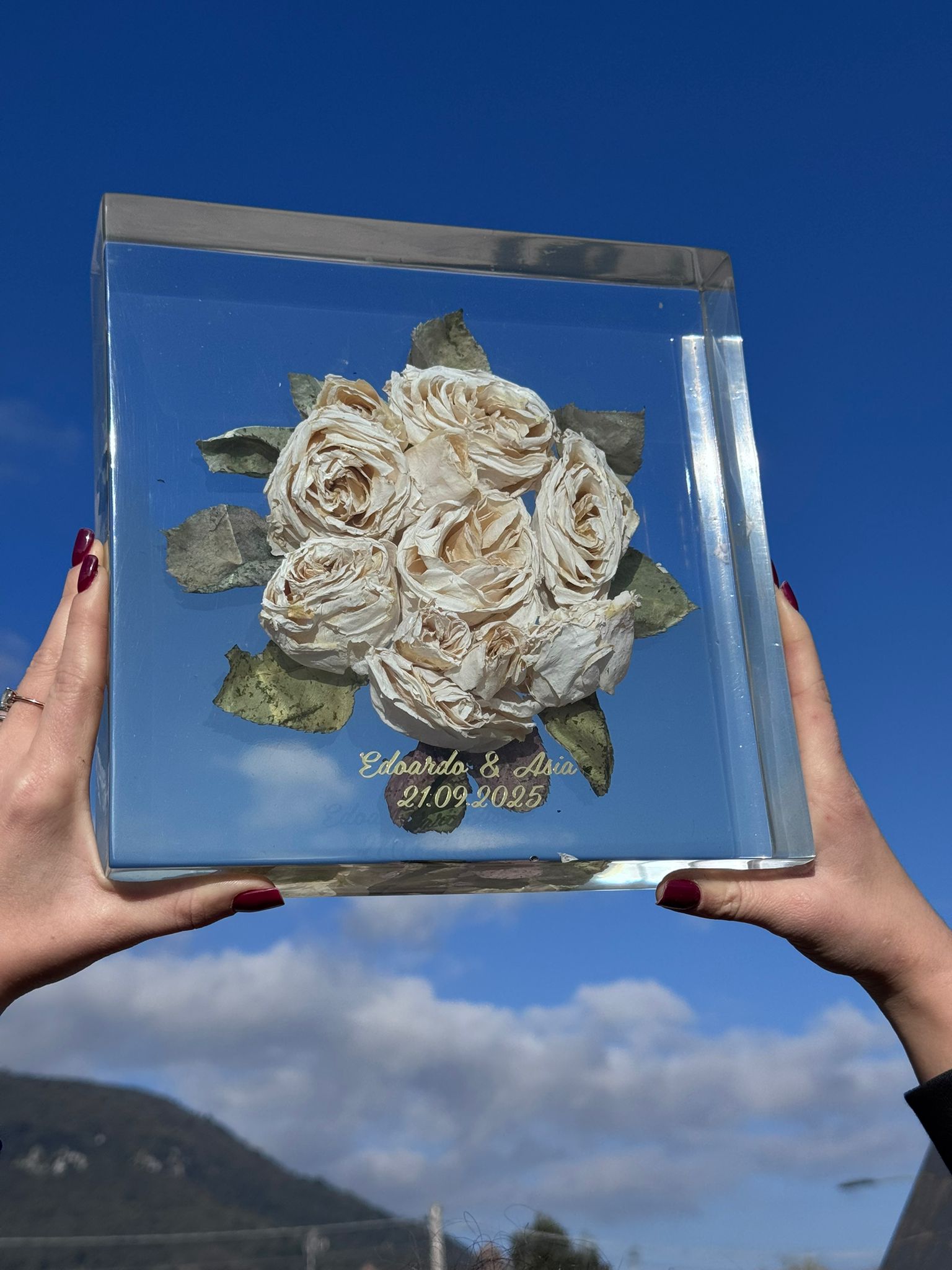 Acquistando questo articolo avrai la possibilità di preservare per sempre i fiori del tuo giorno più bello. Ci tengo a precisare che utilizzo una resina di alta qualità CICLOALIFATICA per evitare ingiallimento negli anni. Ci occupiamo noi del RITIRO dei fiori più SPEDIZIONE.E’ importante in caso di fiori freschi ricevere il bouquet il prima possibile dopo il matrimonio per un lavoro ottimale. Ti spiegherò io come imballare bene il pacco. Prenoterò poi il ritiro tramite il mio corriere che passerà direttamente a casa tua. Ricevuto il bouquet, avvio un processo di disidratazione, questa fase richiede due settimane, dopo di che passo all’inglobazione dei fiori, un lavoro lungo e delicato. I miei sono formati EXTRA LARGE con misura 25×25 Il costo compreso di LUCIDATURA e VERNICIATURA. Il lavoro dura circa 3 MESI! 25X 25CM